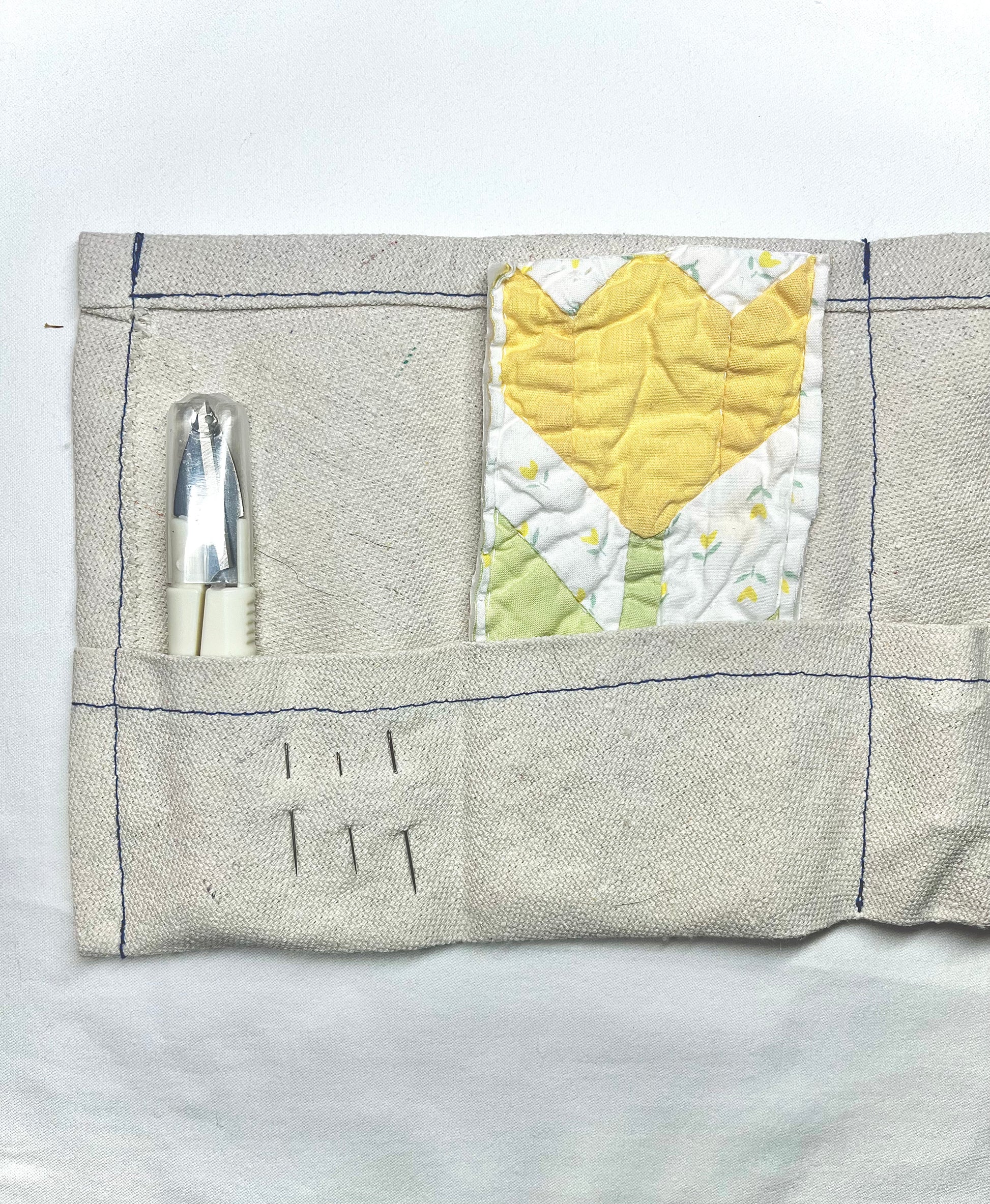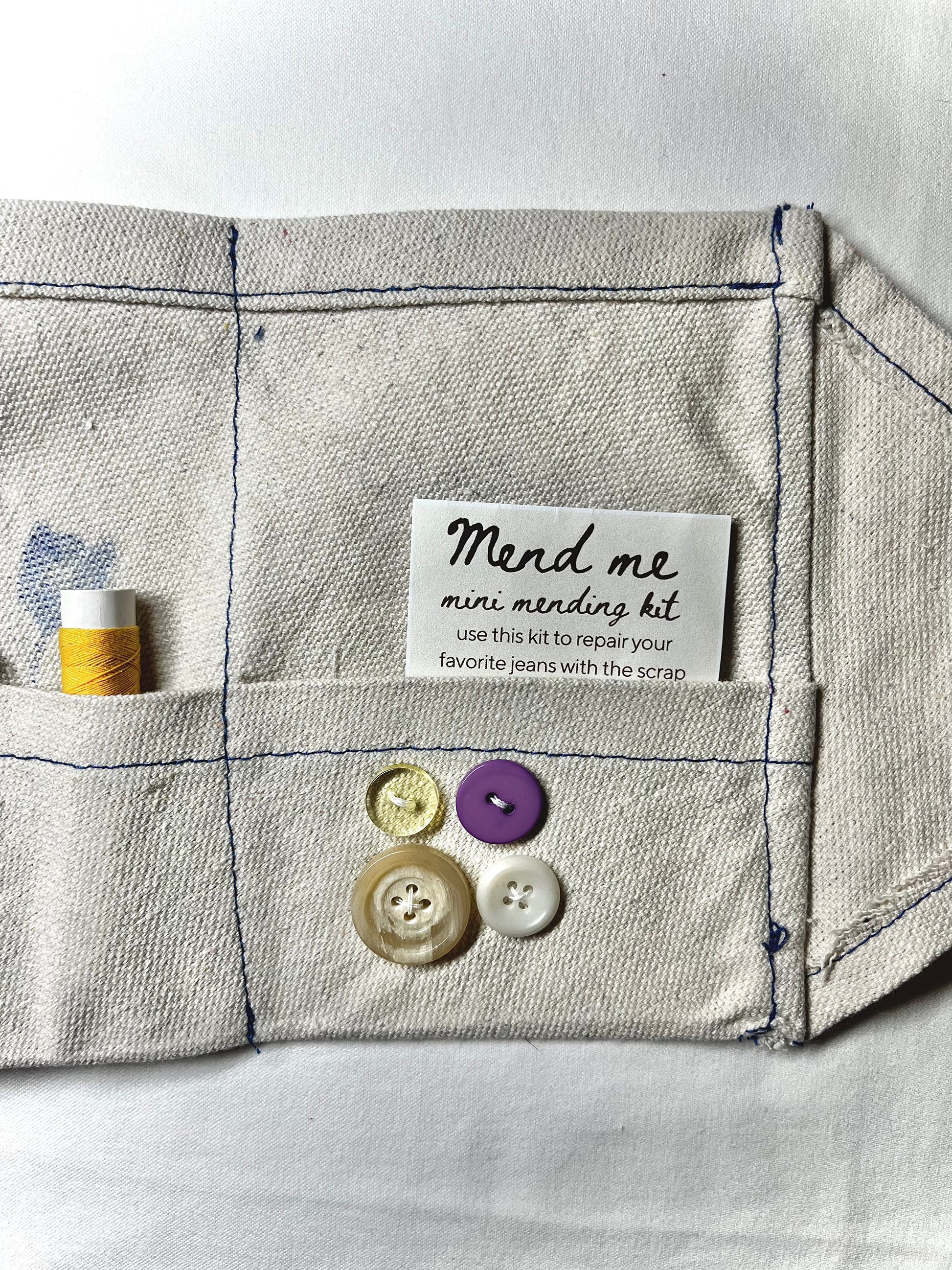 use this kit to repair your favorite jeans with the scrap quilt material or replace a button on a blouse with these vintage buttons.
