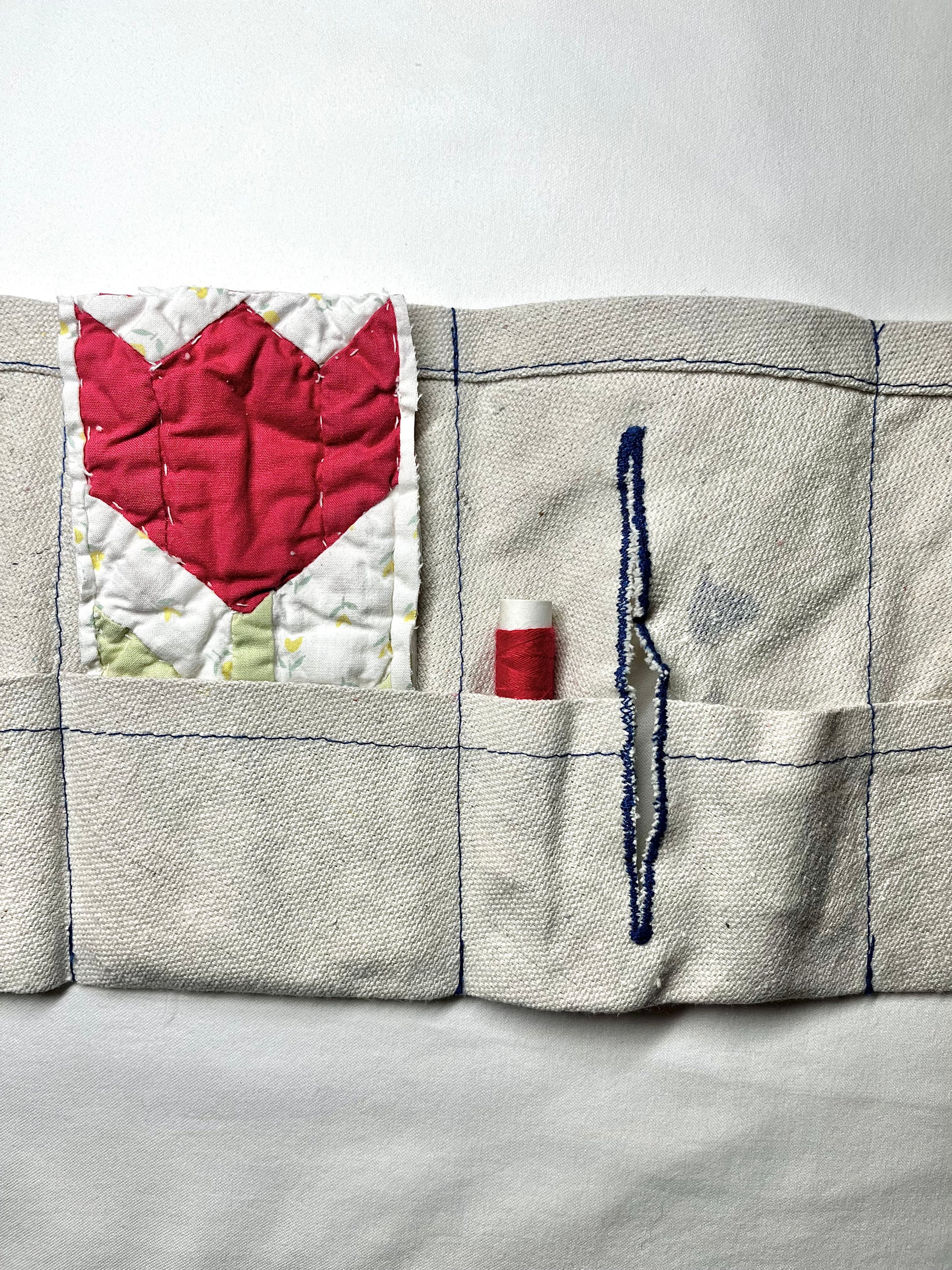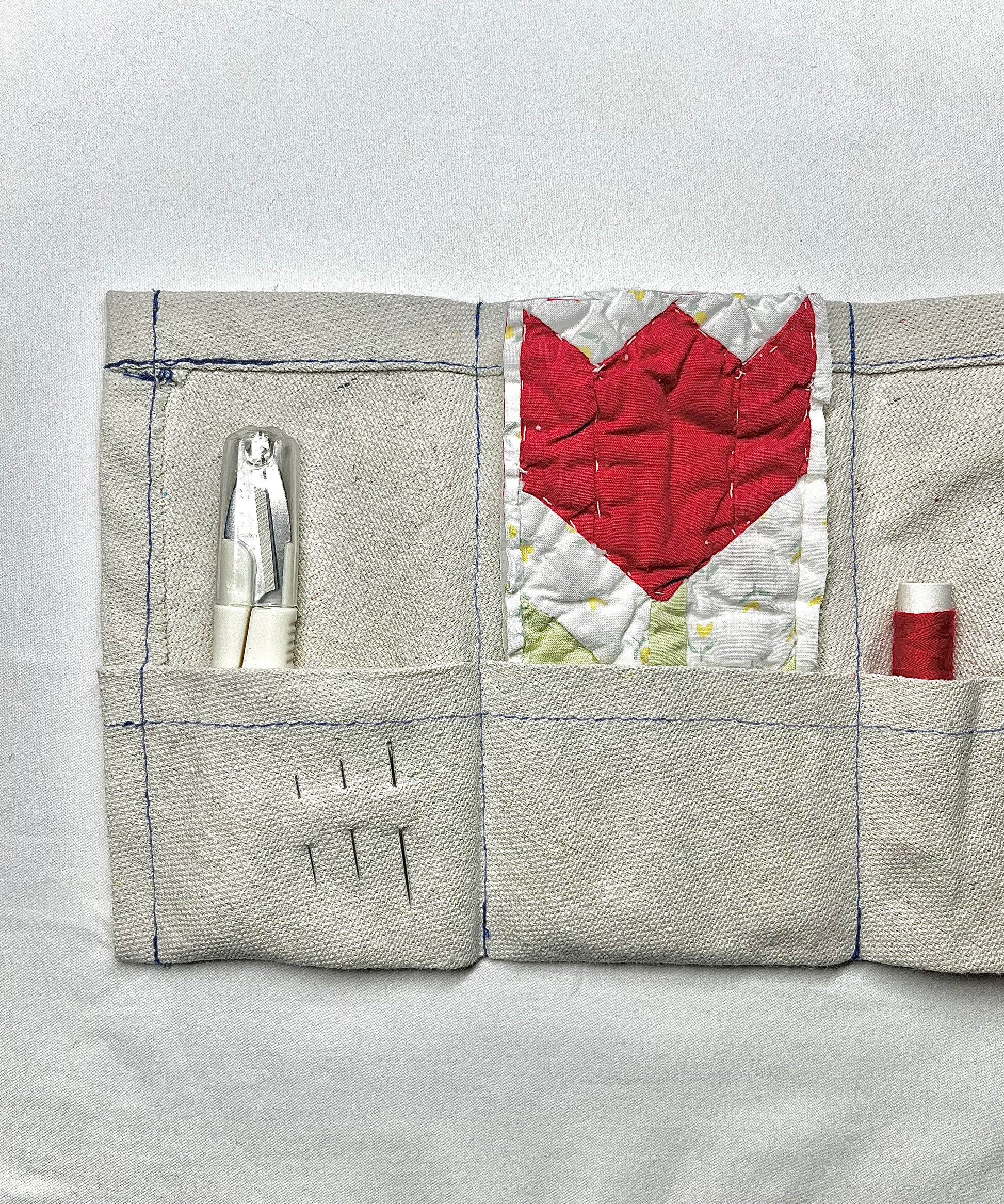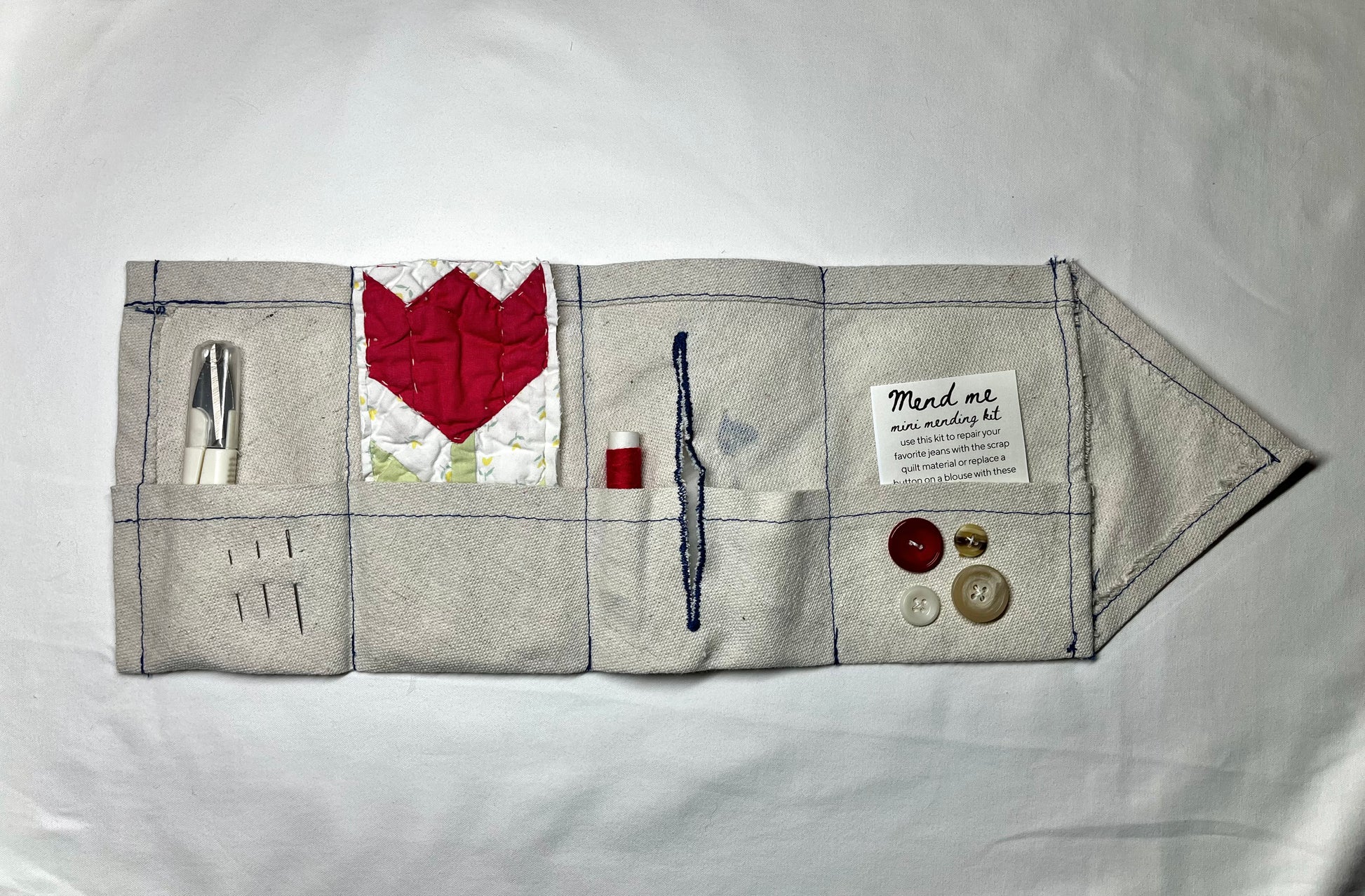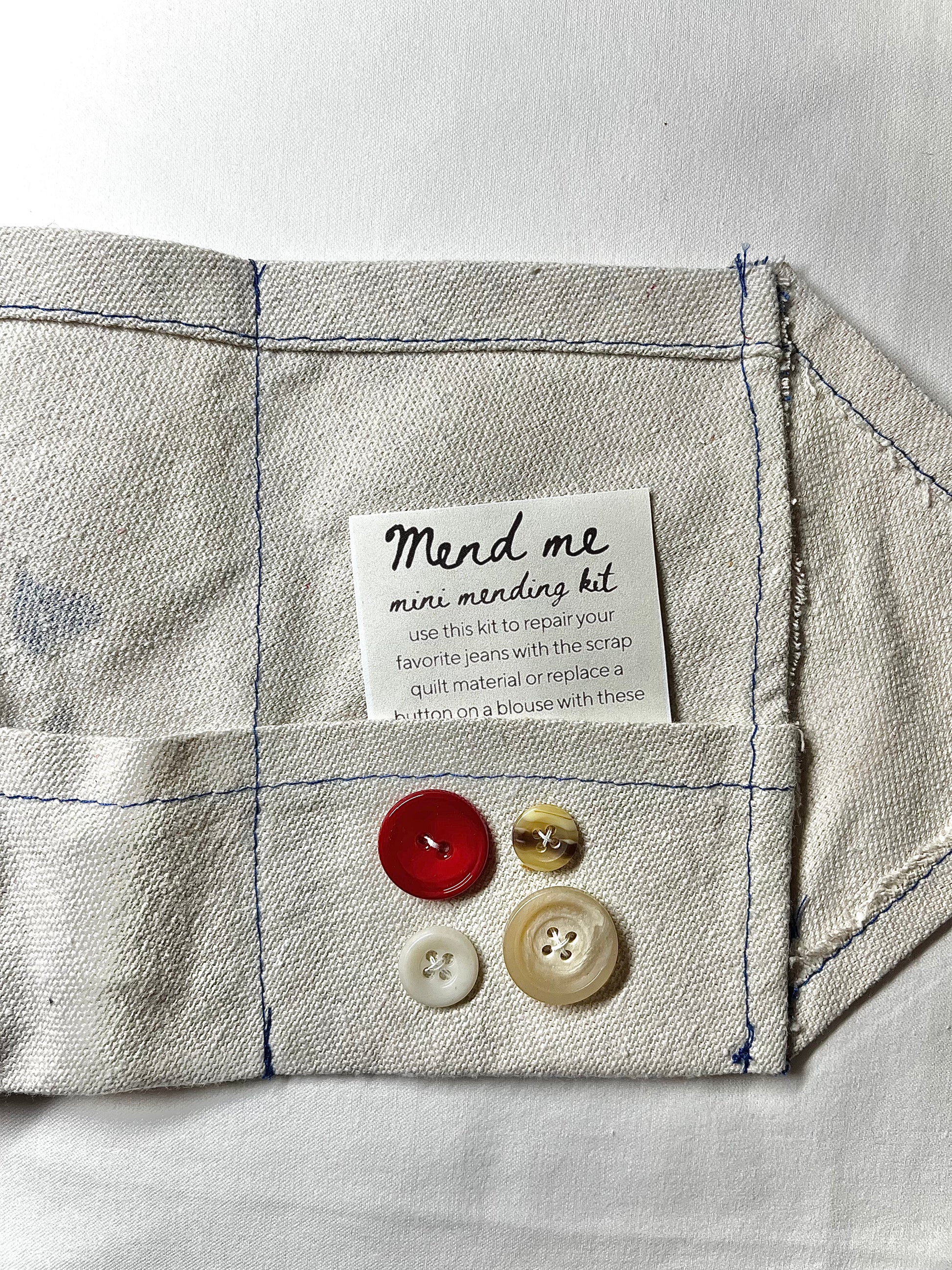use this kit to repair your favorite jeans with the scrap quilt material or replace a button on a blouse with these vintage buttons.
